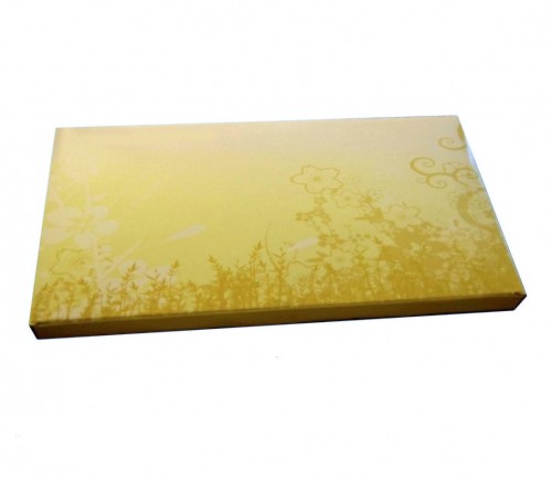Stilvoll bedruckte, aufklappbare Kartonbox. Umverpackung Klarsichtfolie.
