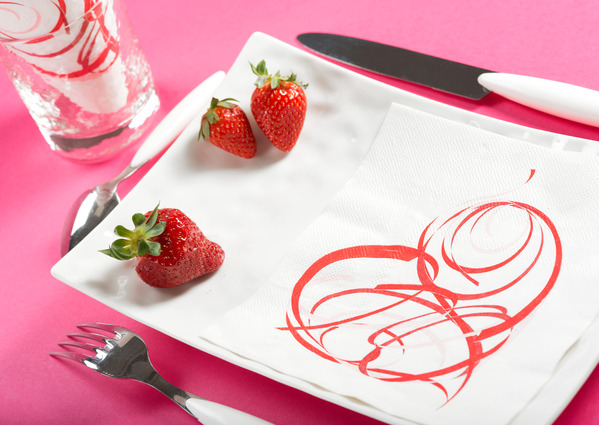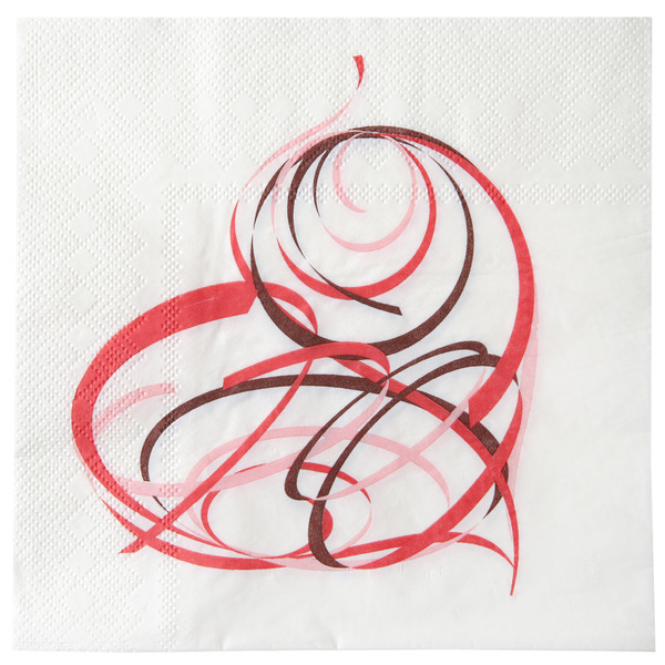 10 Servietten schön bedruckt mit geschwungenen Herzen im modernen Stil.